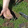 When working a field, use small flags to mark your finds to gain a picture of the layout of the old settlement. Your local home improvement store will sell packs of those little wire stake flags used by utility companies. (Remember to remove all flags and FILL ALL HOLES, even in empty fields, before you leave.)